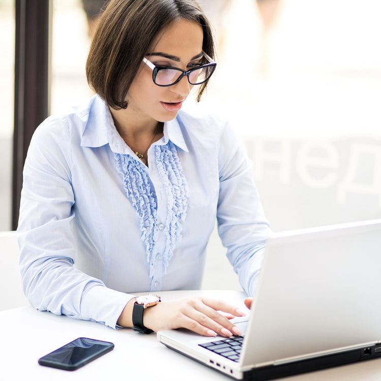 Single-vision or progressive lenses with a slight overpower at the bottom to ease eye strain when using screens. Reduces eye fatigue for heavy smartphone and tablet users.